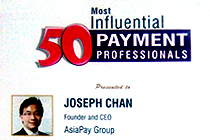 คุณโจเซฟชาน ซีอีโอของเอเชียเพย์ได้รับการยอมรับว่าเป็นหนึ่งใน 50 ผู้เชี่ยวชาญด้านการชำระเงินที่มีอิทธิพลมากที่สุด จาก World Payments Congress ประเทศอินเดีย